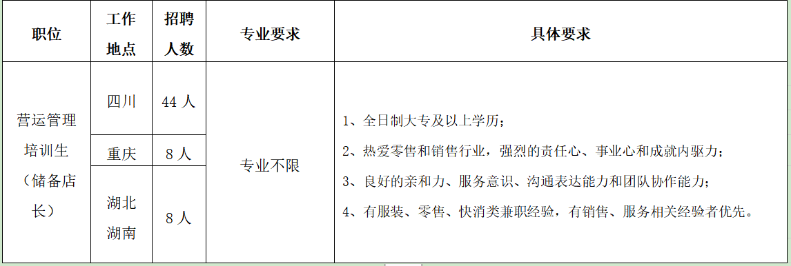 入职特训(5天)---门店轮岗(3-6个月)---店长---区域经理---战区经理 ---营运总监