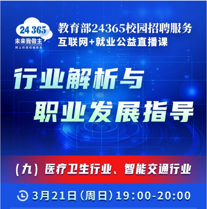 课程预告 | 教育部24365就业公益直播课:行业解析与职业发展指导(九)医疗卫生行业、智能交通行业