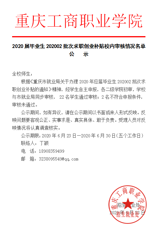 2020届毕业生202002批次求职创业补贴校内审核情况名单公示