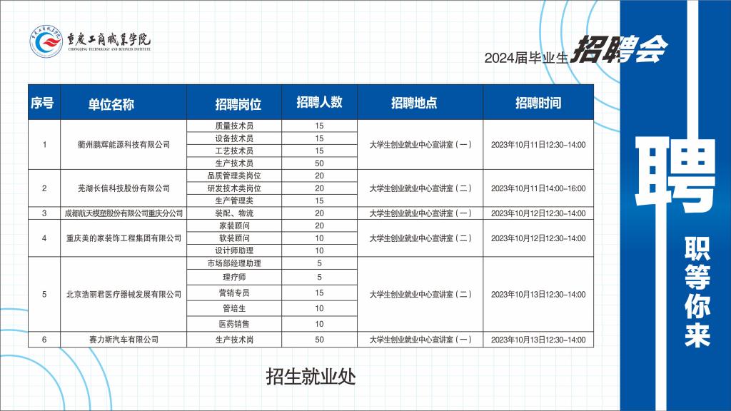 2023年10月9日—13日(第7周)专场招聘时间安排